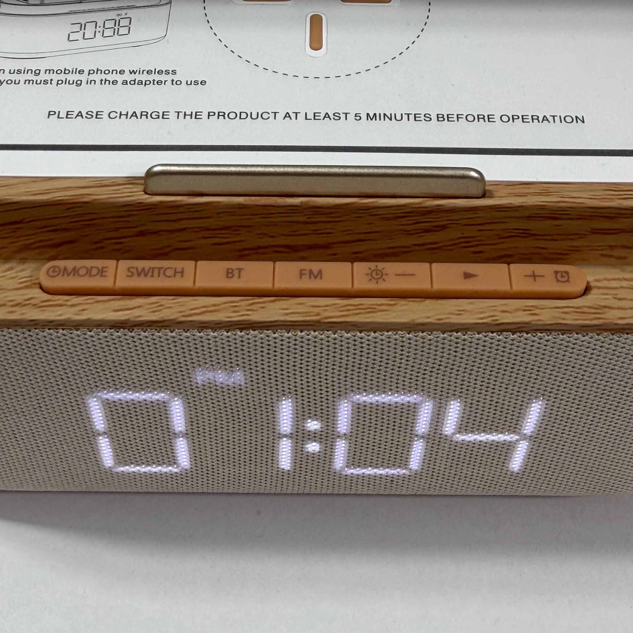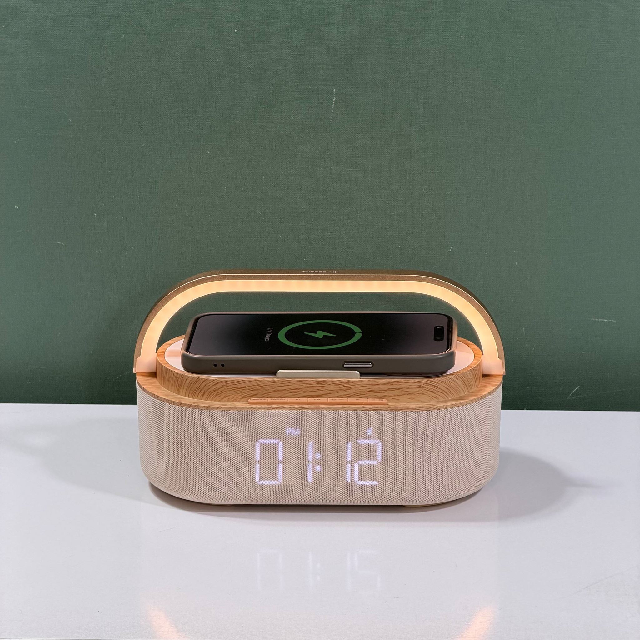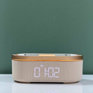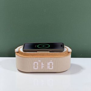 ساعت و شارژر وایرلس یک گجت چندمنظوره و زیباست که ترکیبی از چراغ خواب، اسپیکر، رادیو و شارژر وایرلس را در یک محصول ارائه میدهد. طراحی مدرن با متریال چوبی و نور ملایم، این ساعت را به یک وسیله دکوراتیو خاص برای میز کار یا میز کنار تخت تبدیل کرده است.